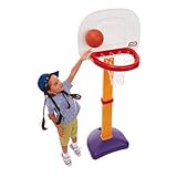 This basketball set from Little Tikes grows as fast as toddlers by adjusting to six heights from two-and-a-half to four feet. Made of sturdy plastic, this is a basketball set that is meant to last. Children love the bright colors. The base can be weighted with sand, not included, for stability. Includes a mini basketball that's easy for small hands to grasp.