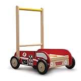 WW-1523-Wooden push toy with eye-catching fire engine decals. -Includes wooden blocks for fun construction play. -Unique, parent-adjustable friction system prevents child from pushing too fast. -Helps young child learn to walk, exercising both arms and legs. -For ages 12 months and up. -Made from environmentally friendly rubberwood and non-toxic water-based paints.