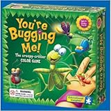 Butterflies, ladybugs, spiders, and other creepy crawlies are on the loose and have settled on players' sleeves in this fun color recognition game. Children roll the die then shoo the swarming critters to another player's sleeve or send their tiny friends buzzing back to the "garden." The first player to send all his or her bugs flying is the winner. Kids will be busy as bees learning colors, cooperation, and following directions- including the difference between right and left. Includes 24 plastic bugs, 4 colored sleeves, bug "garden," jumbo die, illustrated guide. Perfect for home or school. For 2 to 4 players.