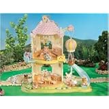 Calico Critter babies love to spend time in the pretty Play House with a windmill on top. It has everything they need to enjoy a delicious meal or take a nap after house of fun at the playground. Unique "build on" features allows you to add more rooms, such as Baby Bathroom", that are specially designed to fit the Play House. Comes with over 20 furniture pieces and accesories, roof detaches to add more rooms, balloon goes up & down, windmill rotates and makes the pretty ceiling mobile inside rotate as well!