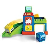 (More customer reviews)My son got this as a gift when he was about 4 months old, but he really wasn't interested in it until he was about 8 months. He sometimes plays with the blocks (and the green plastic ramp!) independently of the town garage, and he now has the dexterity to push the "car" though the carwash and to push the blocks in the garage to hear the various songs. I like that the toy has an on/off switch AND volume control.