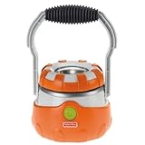 It's a lantern and a spotlight with two lantern glow modes (high/low) and two spotlight beams. Easy-carry handle swivels for quick and easy conversion from lantern to spotlight and back again. Durable bumpers on the base and lens make it tough enough for little explorers. Built to survive drop, after drop, after drop. Requires 4 AA batteries.