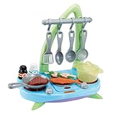 These unique pretend play products allow children the opportunity to express their feelings, use their imaginations and learn about the world around them. And most importantly - they'll have fun while they do it. The Sizzling' Stove is a great little pretend stove. Food sizzles on the grill, simmers in the pan, and pot bubbles on the stove. Burners can be turned on and off. Lights up and makes sounds. Accessories include 4 cooking utensils, salt and pepper shakers, 4 utensil hooks, spaghetti pot with strainer lid, frying pan, fish, shrimp kabob and steak. Ages 3+.