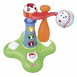 Help build your toddler's physical skills with this colorful, electronic baseball toy that's a home run in fun! Every time baby bats the ball, the toy "comes alive" with the sounds of the game, the crack of the bat and roar of the crowd. Sing along to the music of "Take Me Out to the Ballgame" as bright lights flash with every hit. The swinging arm is height-adjustable to grow with your little slugger. And the chunky, easy-grasp bat stores conveniently on the swinging arm.Includes bat. Adult assembly required Age: 9 months+ Requires 3 "AA" batteries (included)