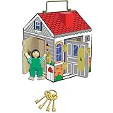 Ding Dong!Fun is at the door of this "sound"ly-built wooden doorbell house.Four electronic doorbell sounds, four unique locks with matching keys, and four pose-able play people are included with this charming cottage!The keys are attached to the house, so they won't get lost, and the sturdy handle allows this exciting house party to go wherever children go!
